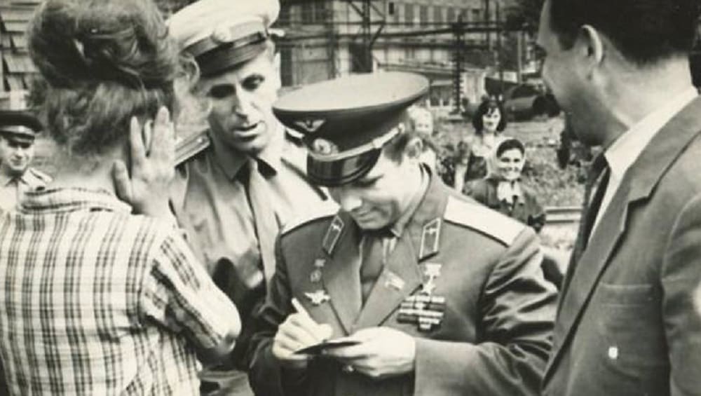 Жителям Брянска показали уникальный фотоснимок Юрия Гагарина во время встречи с рабочими Брянского машиностроительного завода