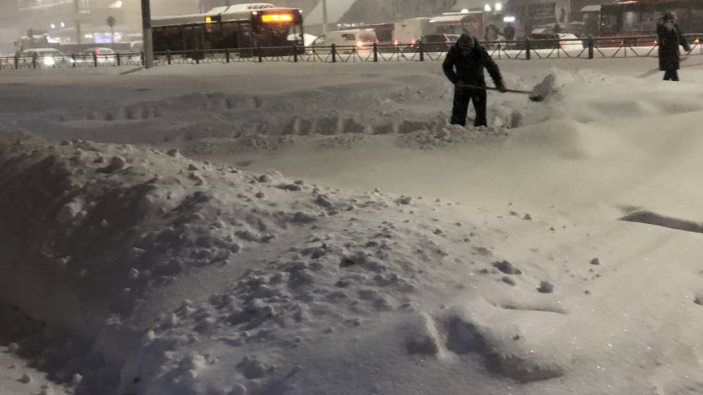 Из-за мощнейшего снегопада даже одна из самых оживленных улиц Брянска − Авиационная − превратилась в медвежий угол