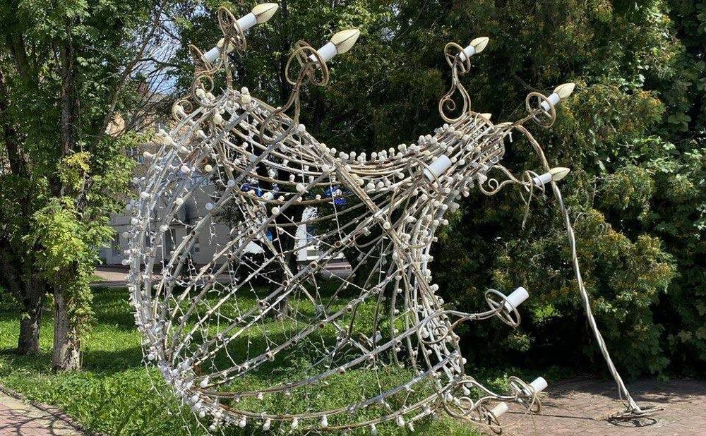 В Унече Брянской области таинственные вредители повредили новогоднего оленя - светящуюся инсталляцию, которую перед праздниками установили на площади Ленина