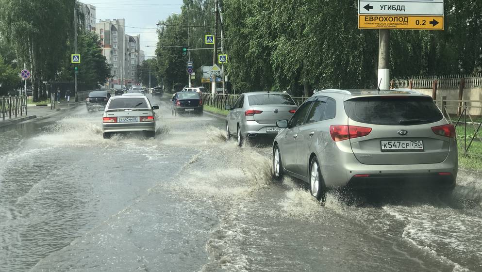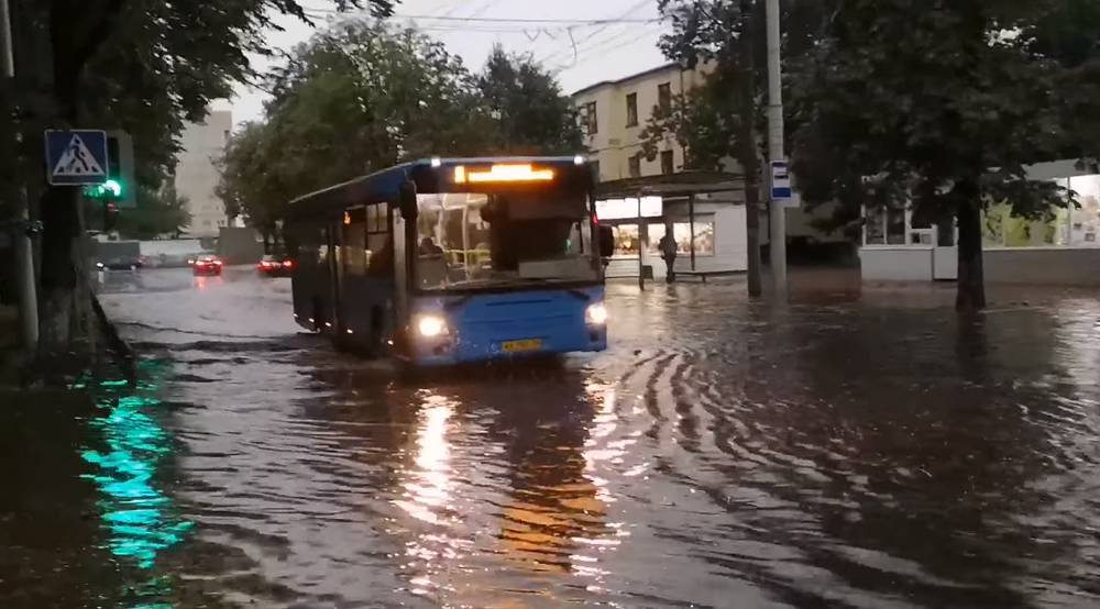 В Брянске прошел мощный ливень, некоторые дороги и тротуары ушли под воду