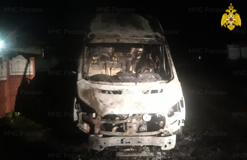 В райцентре Климово Брянской области днём 14 февраля 2025 года спасатели за несколько минут потушили горевший микроавтобус