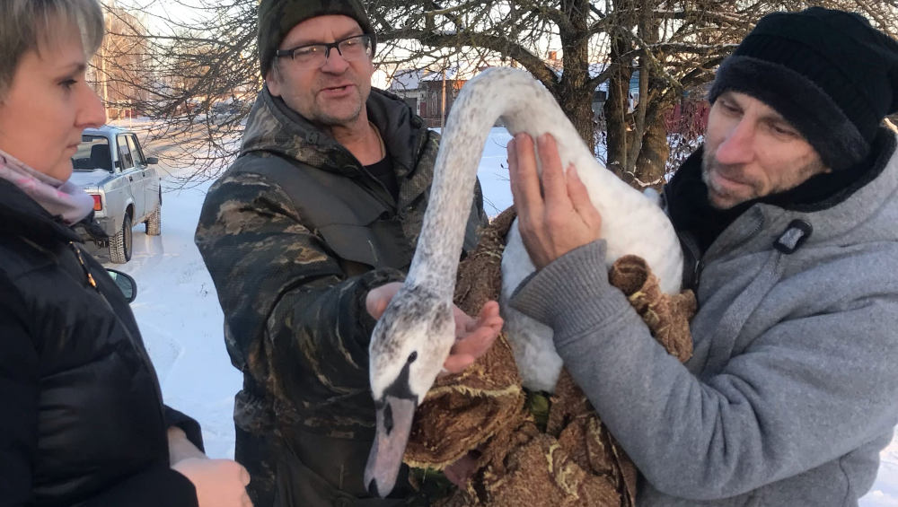 В Брянской области в Стародубском округе на озере возле села Мохоновка оставшийся зимовать лебедь был ранен и обессилил от мороза и голода. Его спасли местные жители, а фермер Сергей Мамеев взял птицу на свое подворье