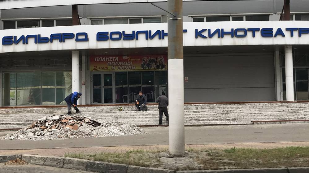 В Брянске в ТРЦ Тимошковых на улице Красноармейской, который закрыт уже несколько лет, начались строительные работы. Рабочие приводят в порядок ступеньки