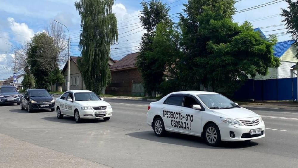 В Брянске полиция организовала автопробег «Трезвый водитель». В акции приняли участие двенадцать легковых автомобилей, украшенных призывающими к трезвому вождению лозунгами