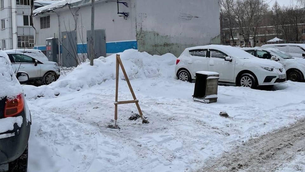 В Брянске в одном из дворов сфотографировали, как автомобилисты пытаются «застолбить» за собой места парковки во дворе