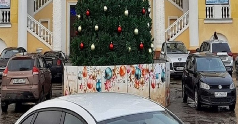 В Фокинском районе Брянска автомобилисты устроили парковку возле главной ёлки района, расположенной на площади возле Дворца железнодорожников